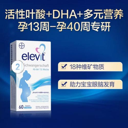 【精选】爱乐维elevit2段含活性叶酸+DHA孕期孕妇专用60粒