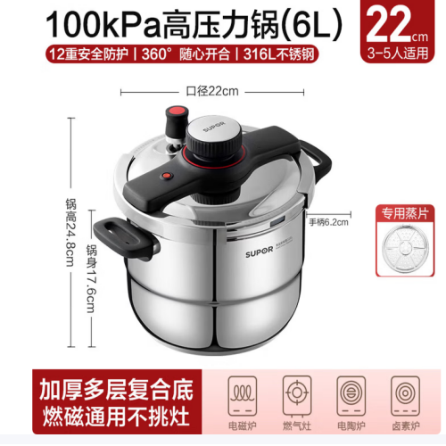【直播专享】苏泊尔巧易开悦旋压力快锅22cm