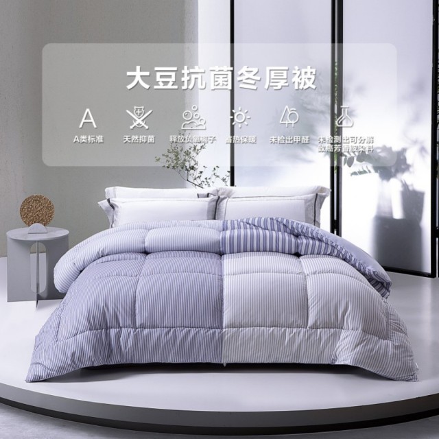 水星家纺简尚韵律·负离子净醛·大豆抗菌冬厚被(宁静蓝) M【品牌推荐】【CJG】