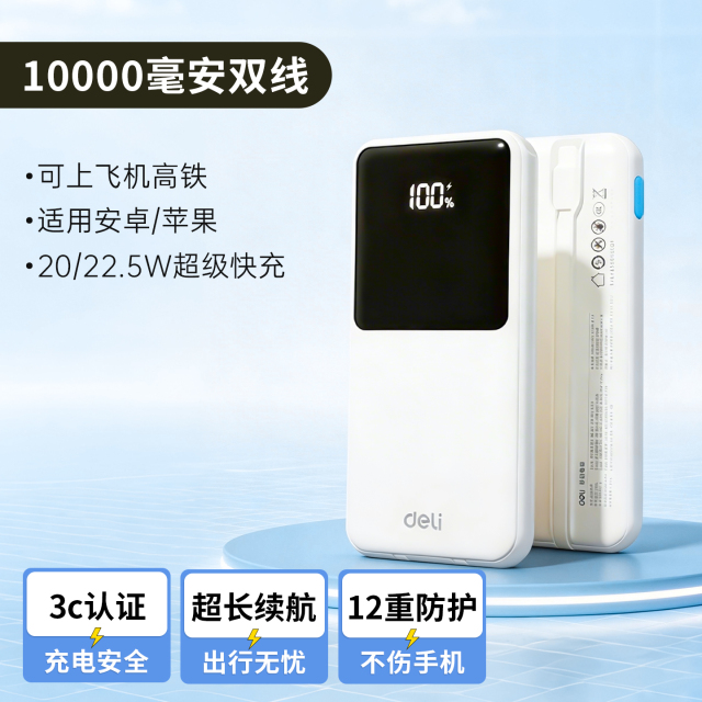 得力AK410-L充电宝10000mah带线【品牌推荐】【得力】【1】